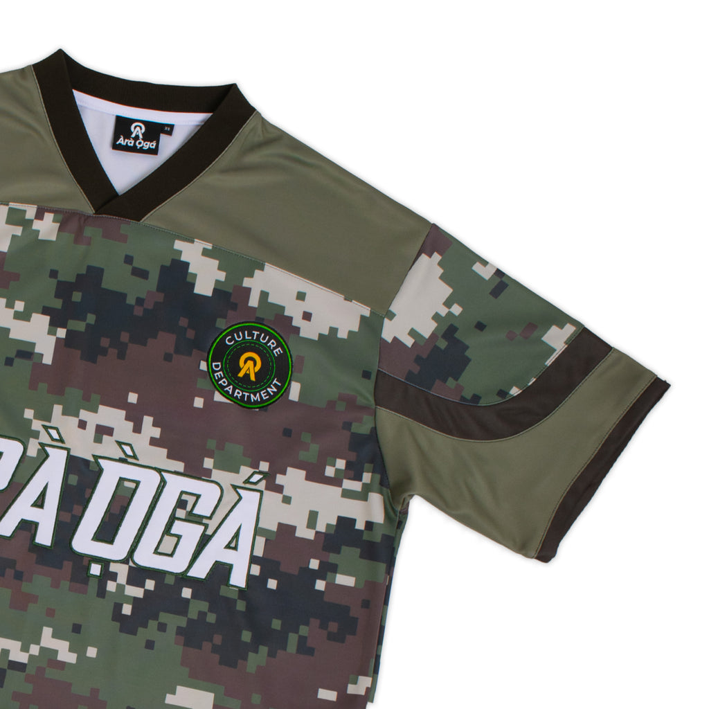 The Ara Oga Dual-Tex Camo Jersey brings a stylish look to your wardrobe. This cool jersey is made with ventilated camouflage-patterned fabric in a classic V-neck, short-sleeved design. For perfect fit, make sure to go a size down.