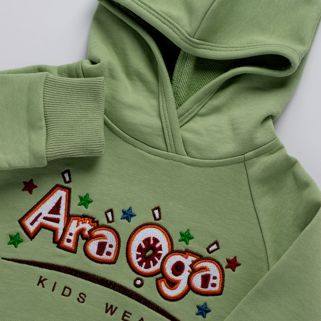 Elevate your child's style game with the ARA OGA KID WEAR 2-PIECE HOODIE SET—a perfect combo of confidence, style, and comfort. This swanky ensemble embodies kiddie coolness with its oversized fit, a kangaroo pocket for tiny treasures, and playful details from the hooded pullover to ribbed cuffs and hem. The Custom ARA OGA KIDS WEAR embroidery logo adds an extra touch of swag. Beyond its top-notch aesthetics, this set is a comfort champion crafted from 100% cotton fabric, ensuring durability and warmth. It goes beyond being just an outfit; it's a confidence booster, a style statement, and a cozy hug all wrapped up in one for every little trendsetter out there!
