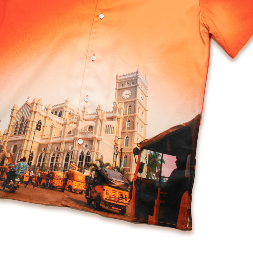 Groove in style with the ARA OGA CATHEDRAL BUTTON-DOWN COLLAR SHIRT—a true fashion revelation. Unlike mundane photo-text shirts, this vibrant piece is an ode to your roots, spirituality, and personal style. Craftily inscribed with “LAGOS” and featuring a nostalgic visual symphony of Lekki Cathedral, Keke-napep tricycles, and motorcycles, it captures the Nigerian ambience uniquely. Made from a meticulous blend of polyester and cotton, this shirt is not just comfortable—it's a vibe! Whether paired with shorts or pants, it radiates an effortlessly cool and comfy aura for summer days, beach outings, or casual dates. The button-down collar adds a playful touch, making it a must-have for both men and women seeking a trendy expression of self. Experience a trendy home-away-from-home feel, wrapped in the warmth of nostalgia. Express your identity in the language of style, and what better translator than the ARA OGA CATHEDRAL BUTTON-DOWN COLLAR SHIRT? It's not just an amazing piece; it's your identity stitched into every fabric.